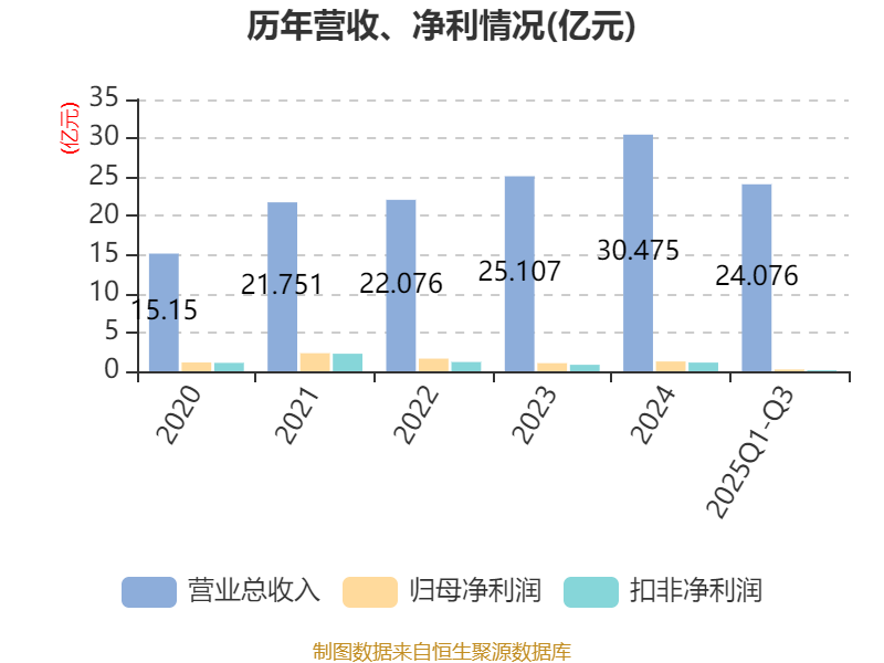 中证智能财讯富春染织(605189)10月30日披露2025年第三季度报告。前三季度公司实现营业总收入24.08亿元,同比增长9.87%;归母净利润2334.76万元,同比下降77.49%;扣非净利润1246.39万元,同比下降87.98%;经营活动产生的现金流量净额为1.11亿元,上年同期为-5.44亿元;报告期内,富春染织基本每股收益为0.11元,加权平均净资产收益率为1.24%。