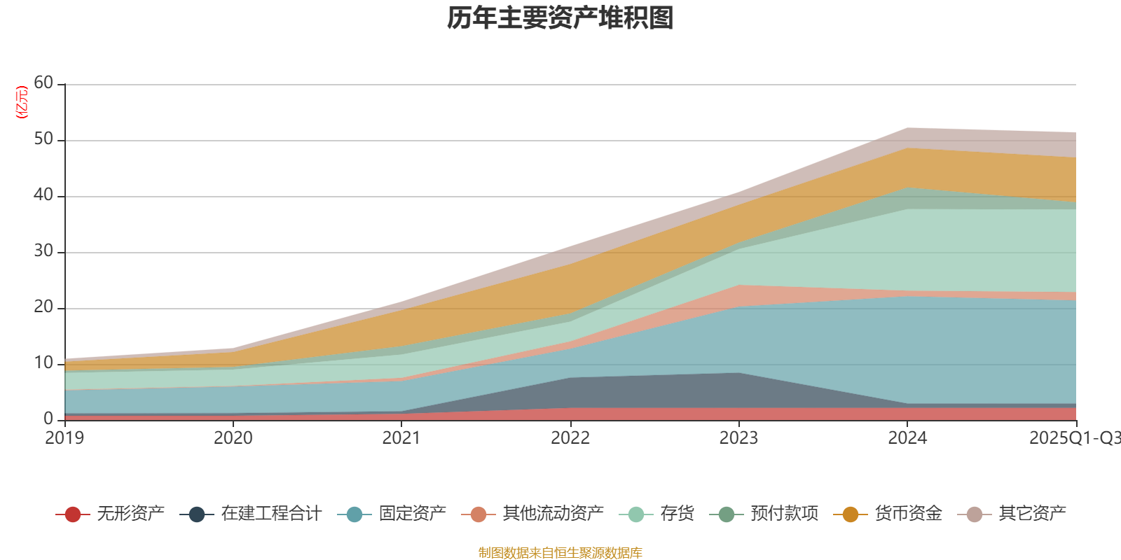 资产重大变化方面,截至2025年三季度末,公司预付款项较上年末减少66.6%,占公司总资产比重下降4.9个百分点;货币资金较上年末增加12.66%,占公司总资产比重上升1.97个百分点;其他应收款(含利息和股利)较上年末增加72.54%,占公司总资产比重上升1.58个百分点;其他流动资产较上年末增加51.42%,占公司总资产比重上升1.02个百分点。