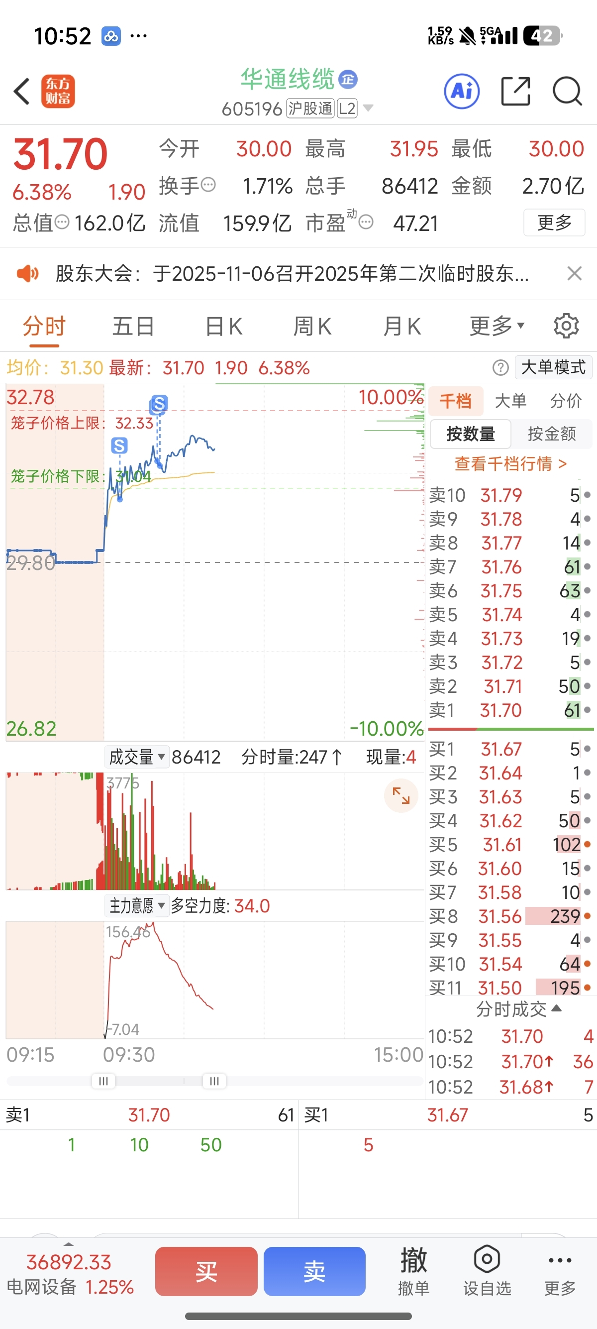 $华通线缆(SH605196)$ 见好就收吧,热度炒起来就到鱼尾了,热度散去又是一片狼藉。关注一下筹码,留意一下资金流入方向和股价走势。