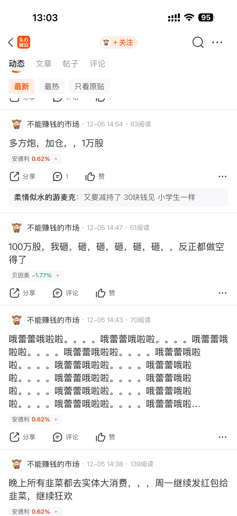 温馨提示: 1.根据《证券法》规定,禁止编造、传播虚假信息或者误导性信息,扰乱证券市场;2.用户在本社区发表的所有资料、言论等仅代表个人观点,与本网站立场无关,不对您构成任何投资建议。用户应基于自己的独立判断,自行决定证券投资并承担相应风险。《东方财富社区管理规定》