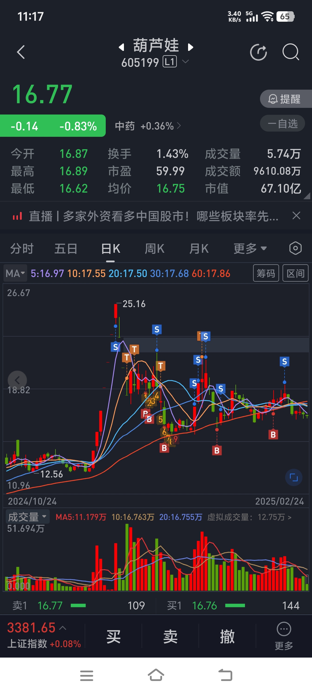 $葫芦娃(SH605199)$ 来吧,展示。目前已经清仓。等到14左右建仓