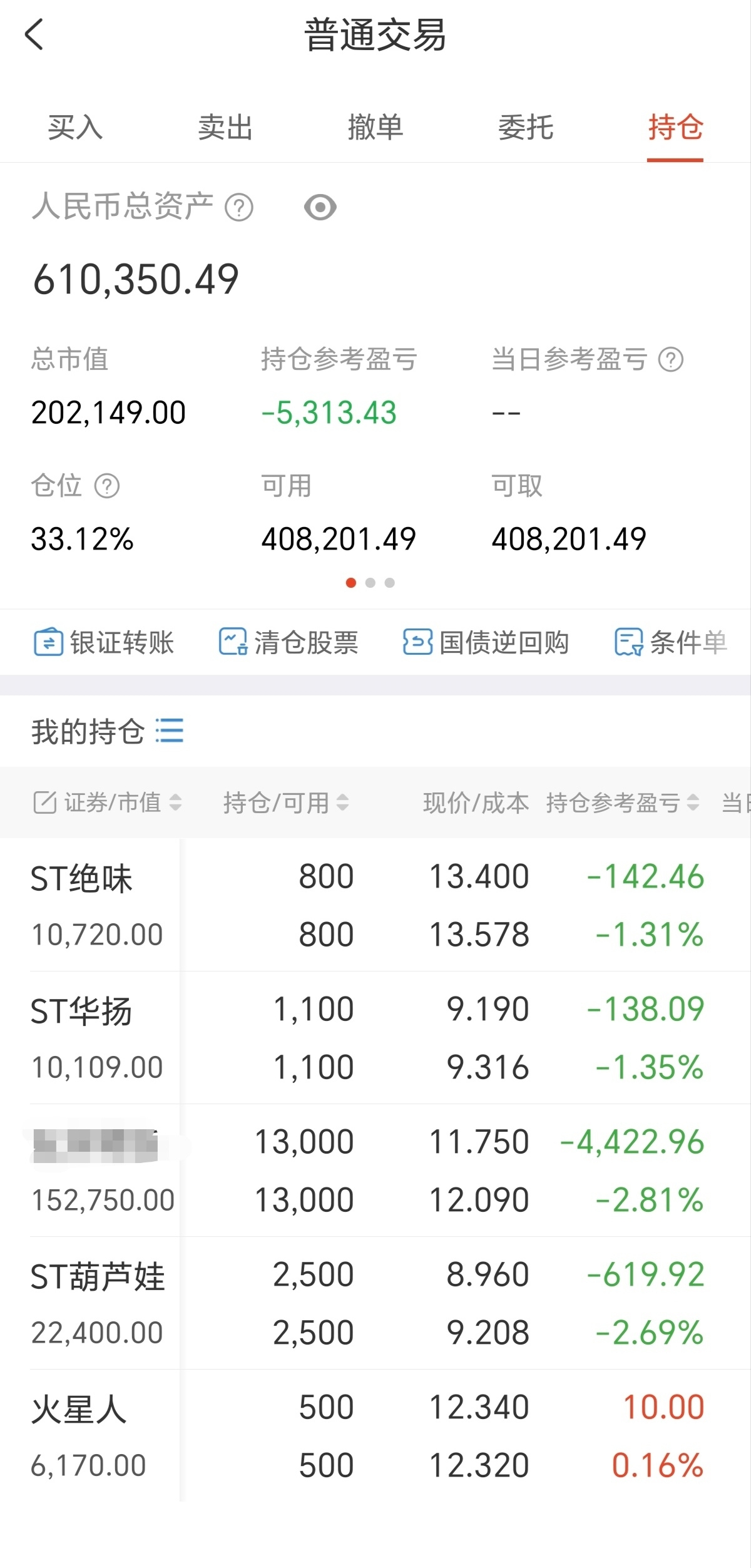 $ST葫芦娃(SH605199)$ $ST绝味(SH603517)$ 这五个垃圾,真是难兄难弟,有没有成本比我高的啊?今年是不指望了,跌多了就加一点,大不了慢慢满仓,然后拿到明年底,随便它去折腾吧。