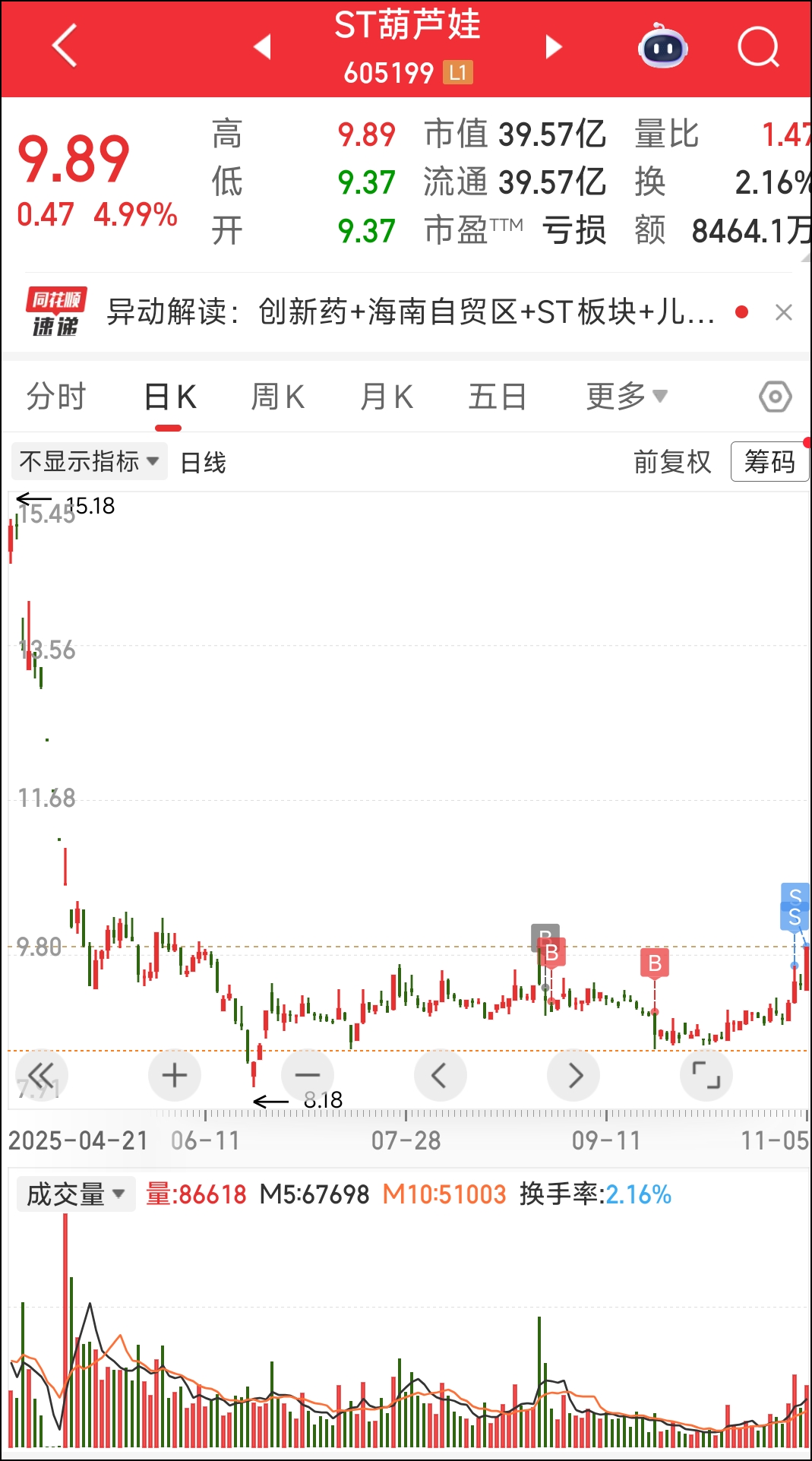 $ST葫芦娃(SH605199)$ 姐姐睡了,姐姐不再寂寞,嘻嘻#炒股日记#