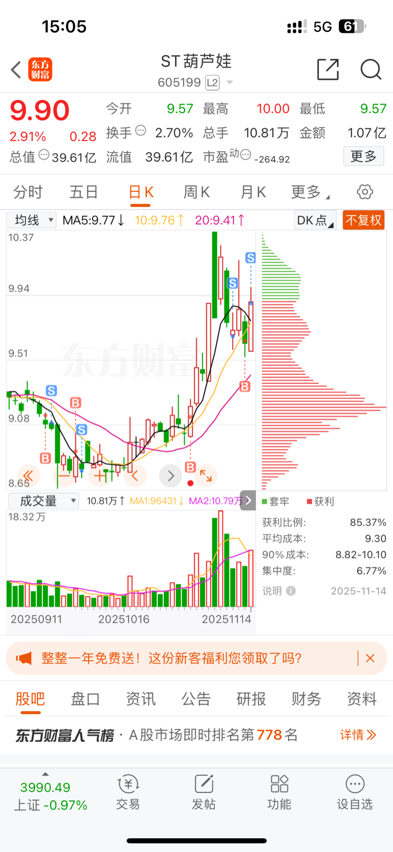 没有卖在最高点,可惜了。祝留下来的发财