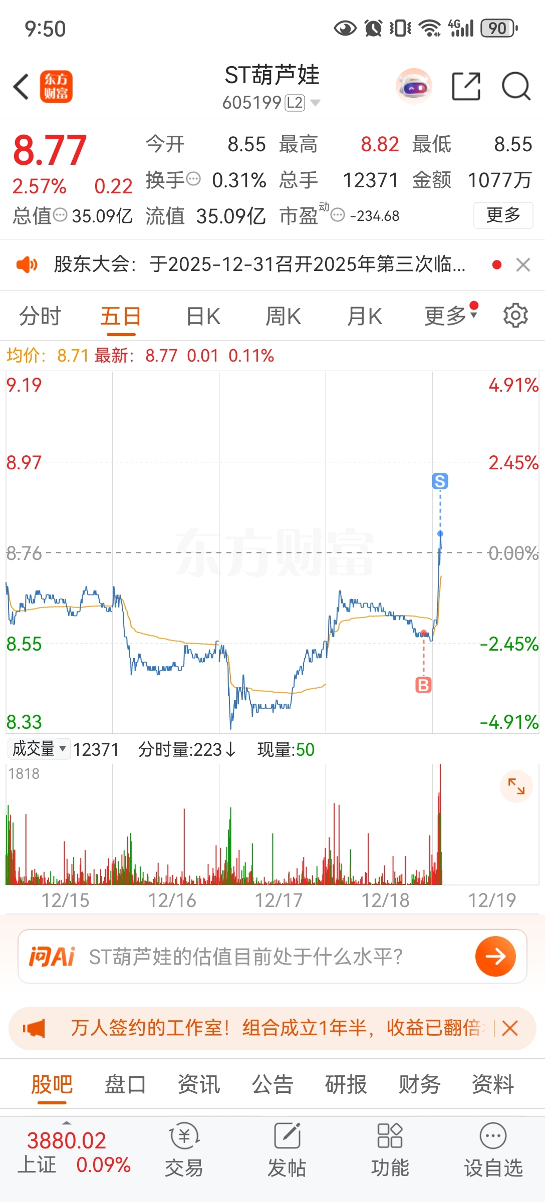 $ST葫芦娃(SH605199)$ 快进快出,3个点到手~