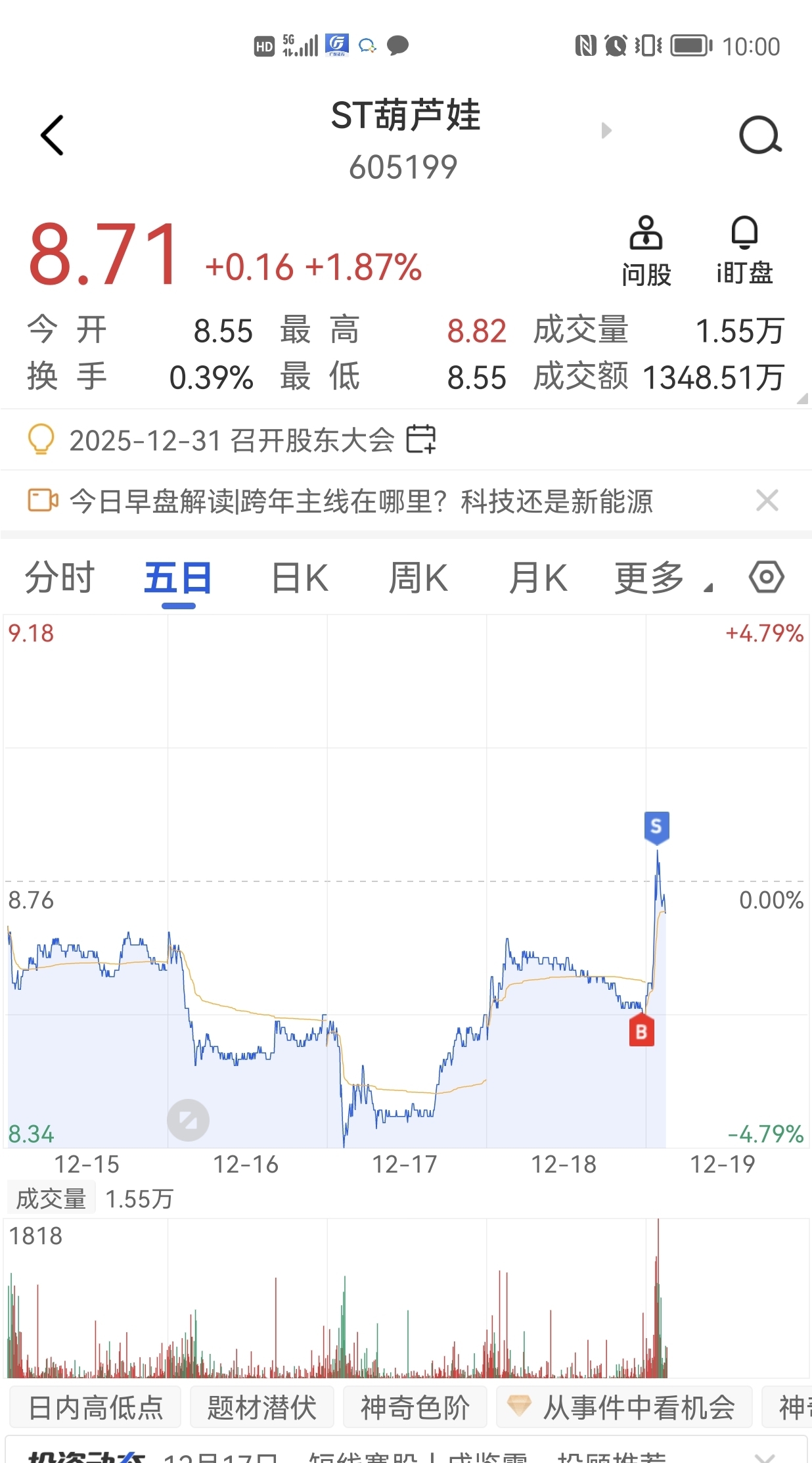 $ST葫芦娃(SH605199)$ 隔日T,主仓锁仓不动。