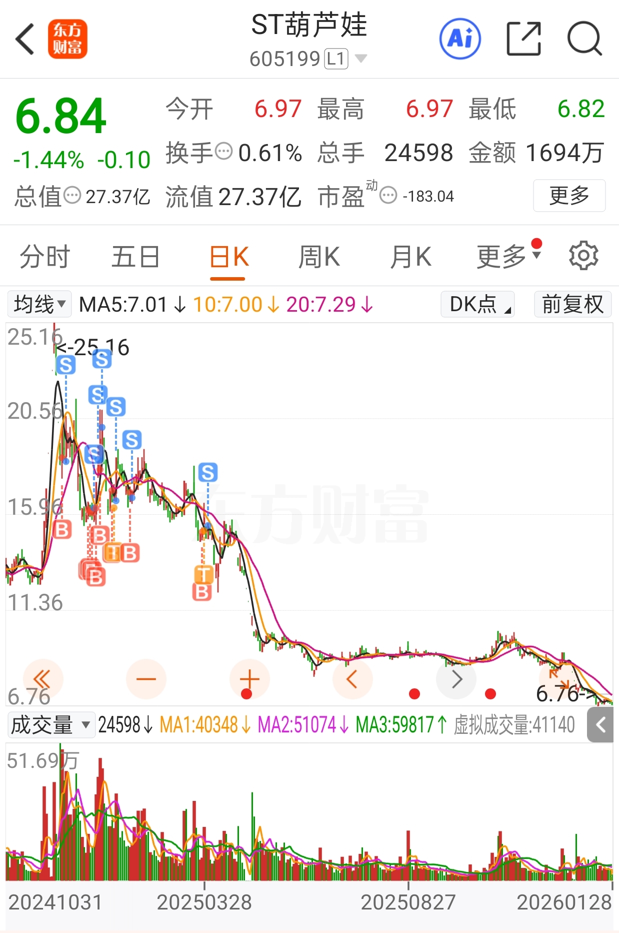 $ST葫芦娃(SH605199)$ 还好当时本金跑了,剩利润在这