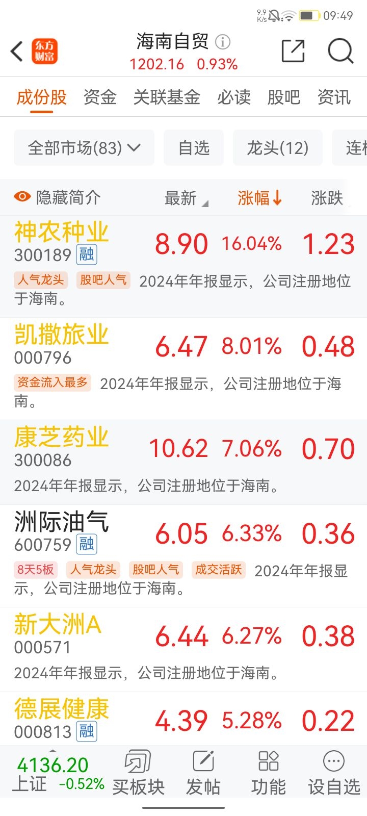 海南自贸区板块雄起,康芝药业大涨7%