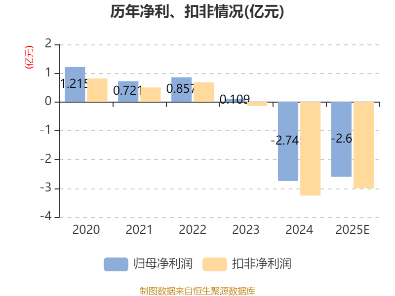 中证智能财讯 ST葫芦娃(605199)1月30日晚间披露2025年度业绩预告,预计2025年归母净利润亏损2.1亿元至3.1亿元,上年同期亏损2.74亿元;扣非净利润亏损2.5亿元至3.5亿元,上年同期亏损3.25亿元。以最新收盘价计算,市净率(LF)约3.88倍,市销率(TTM)约2.51倍。