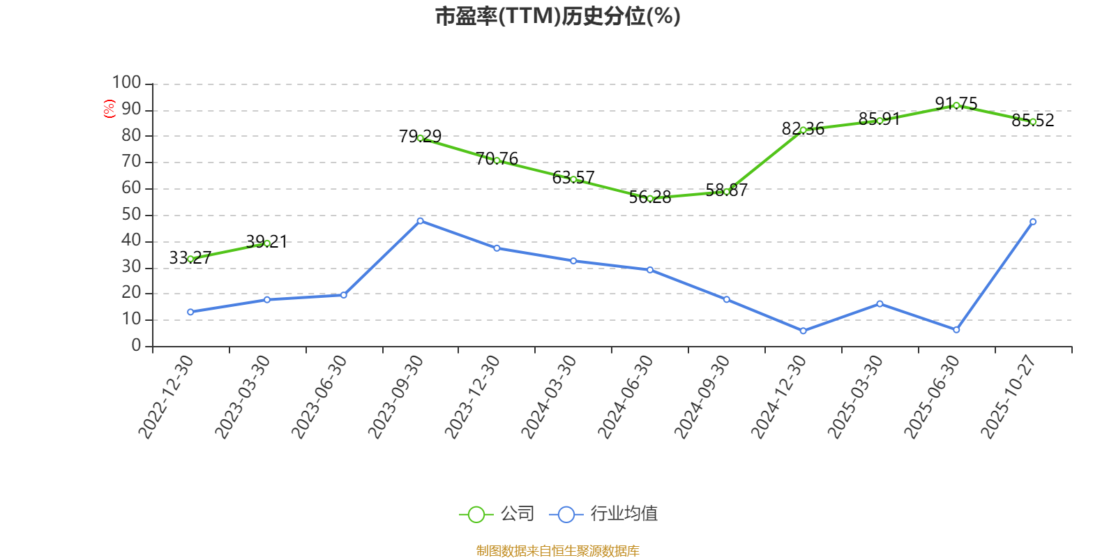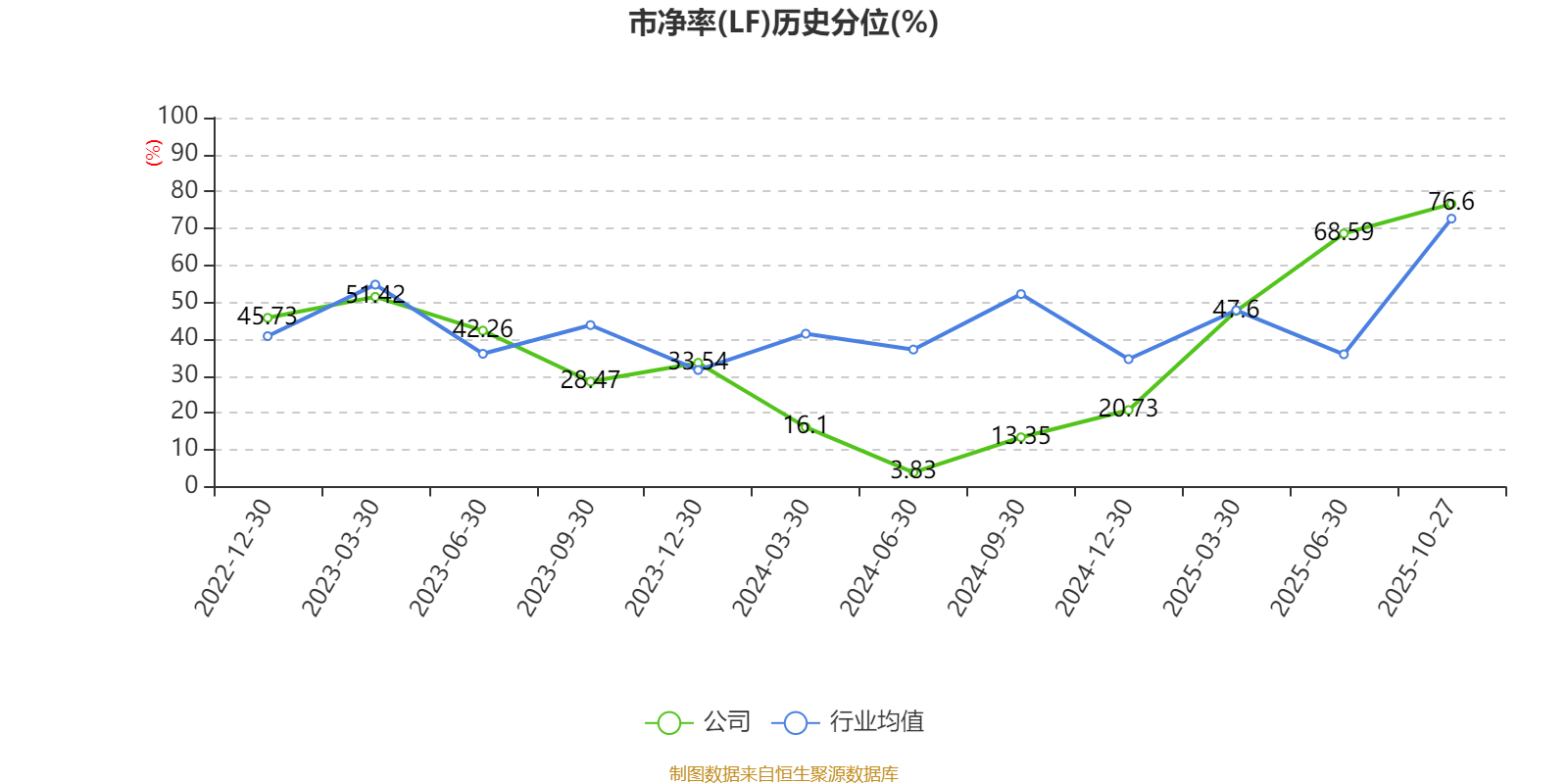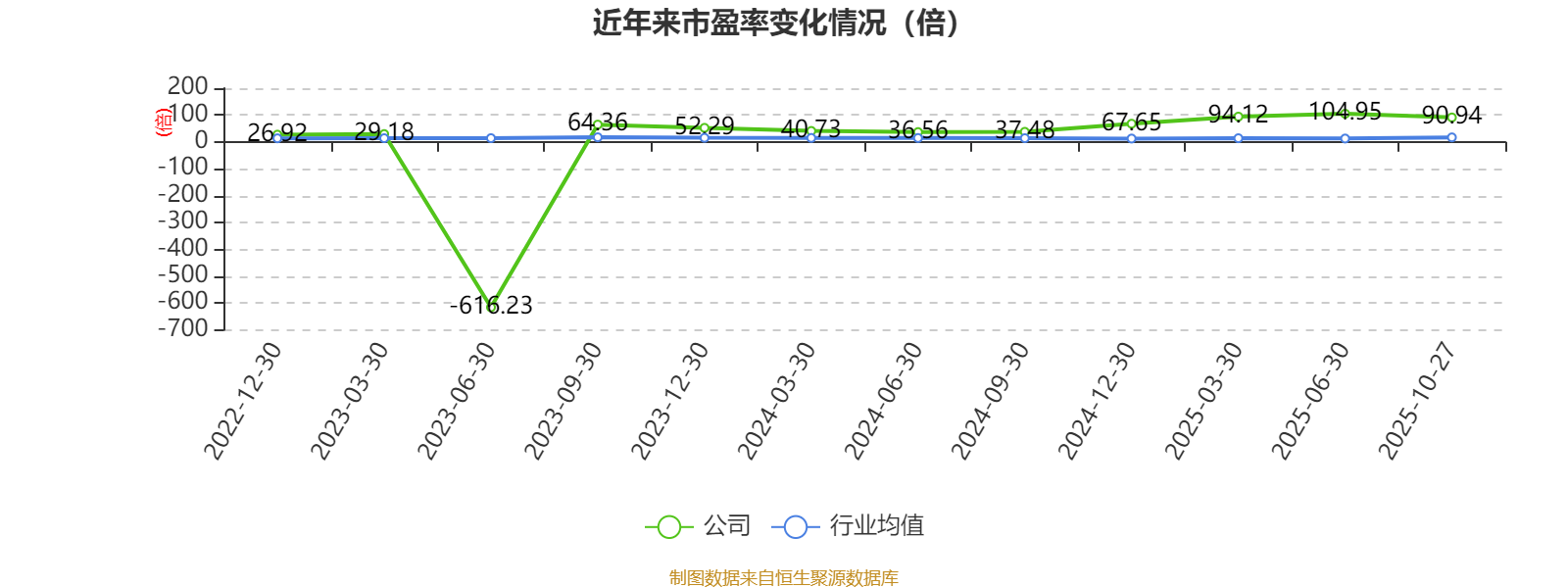 市盈率、市净率为负时,不显示当期分位数,会导致折线图中断。