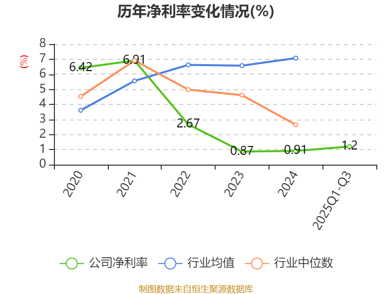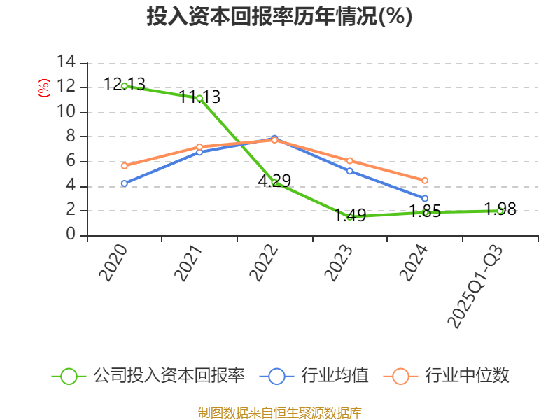 盈利能力方面, 2025年前三季度公司加权平均净资产收益率为2.34%,同比上升0.63个百分点。公司2025年前三季度投入资本回报率为1.98%,较上年同期上升0.29个百分点。