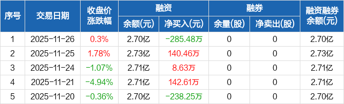 永茂泰:融资净偿还285.48万元,融资余额2.7亿元(11-26)