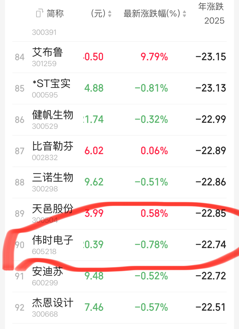 年内涨幅倒数第90名(两市五千多只股)