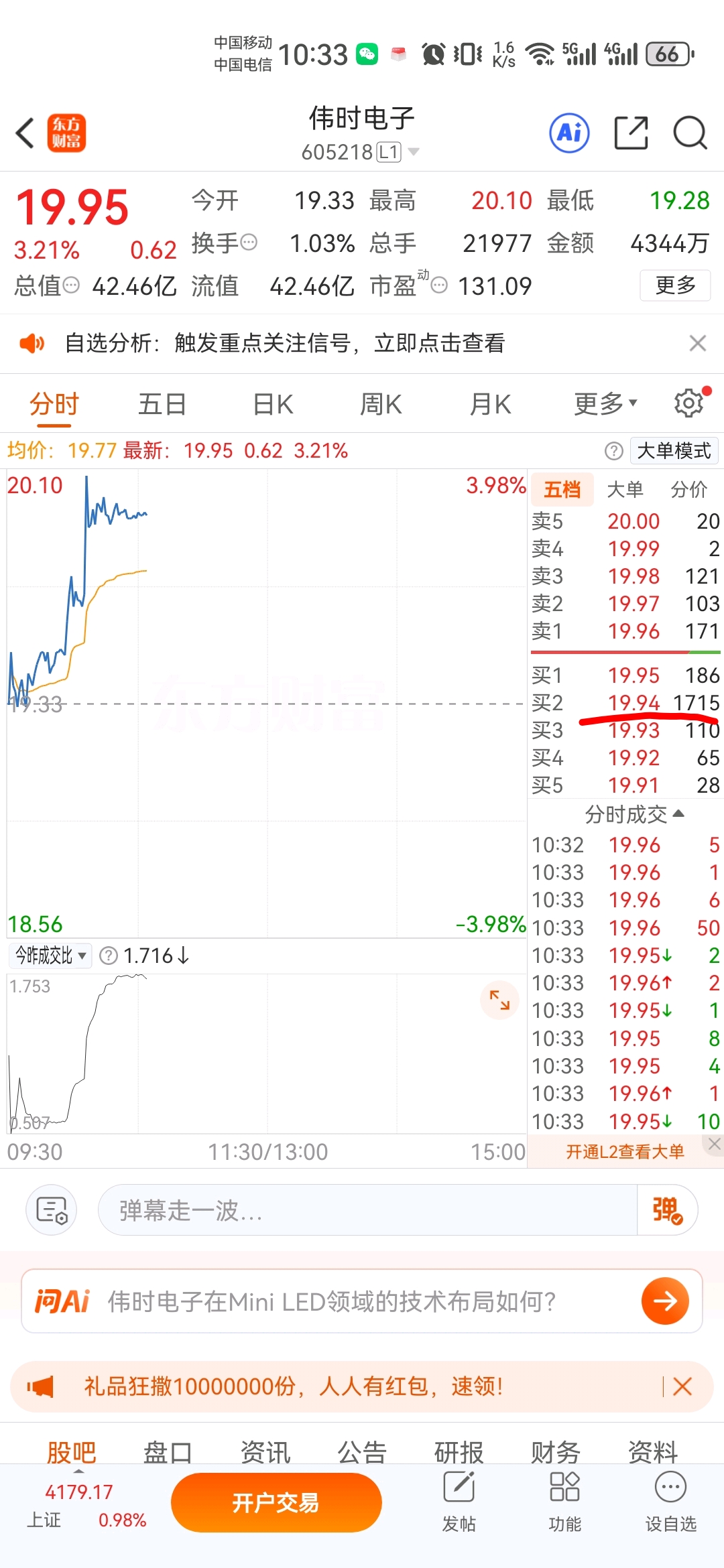 $伟时电子(SH605218)$ 拖单必跌破