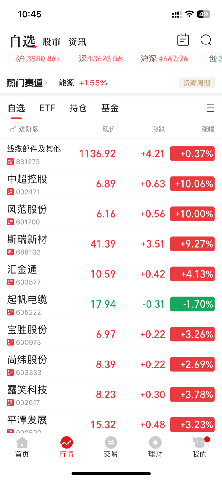 $起帆电缆(SH605222)$ 大盘早创10年新高,它牛市跌破发行价,离高点遥远,华菱电缆20来天翻倍了,市值大于起帆二倍,净利润不到起帆一半!中超股份电缆1.84元涨了快4倍,今天继续涨停!大盘9连阳,这啥b跌了6天!