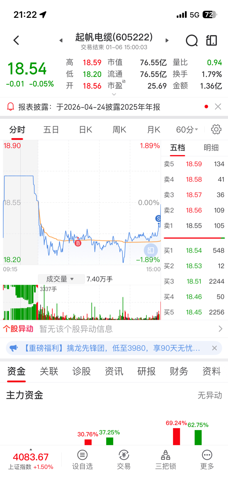 $起帆电缆(SH605222)$ 今天没弄好,跑了4层,留了一层,今天还亏了,庄,牛掰