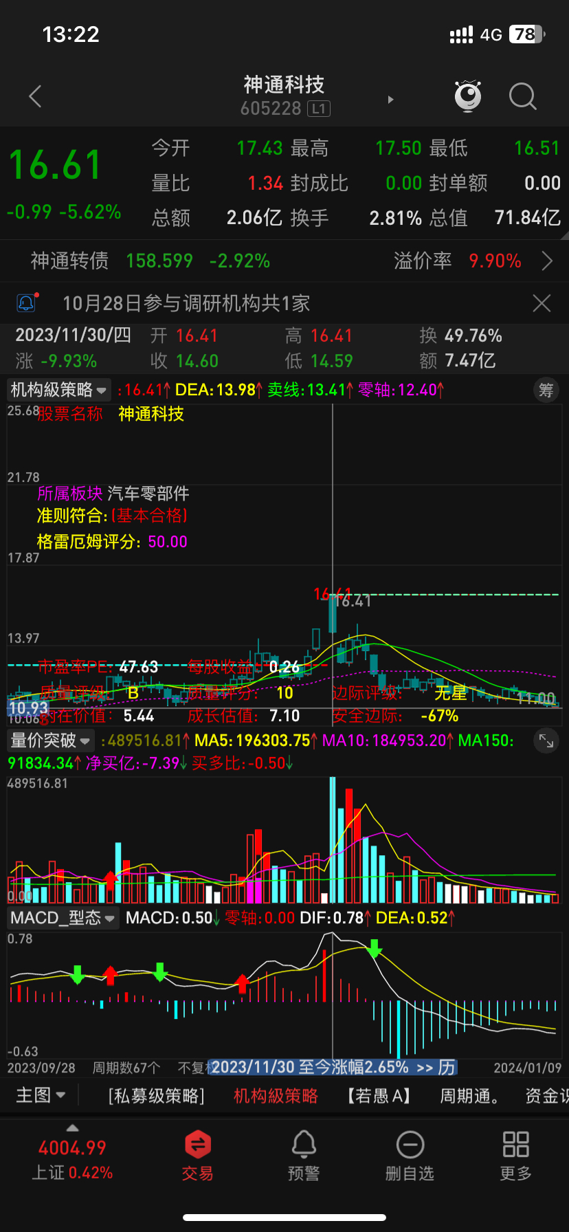 $神通科技(SH605228)$ 打到2023年11月30日的头16.41元