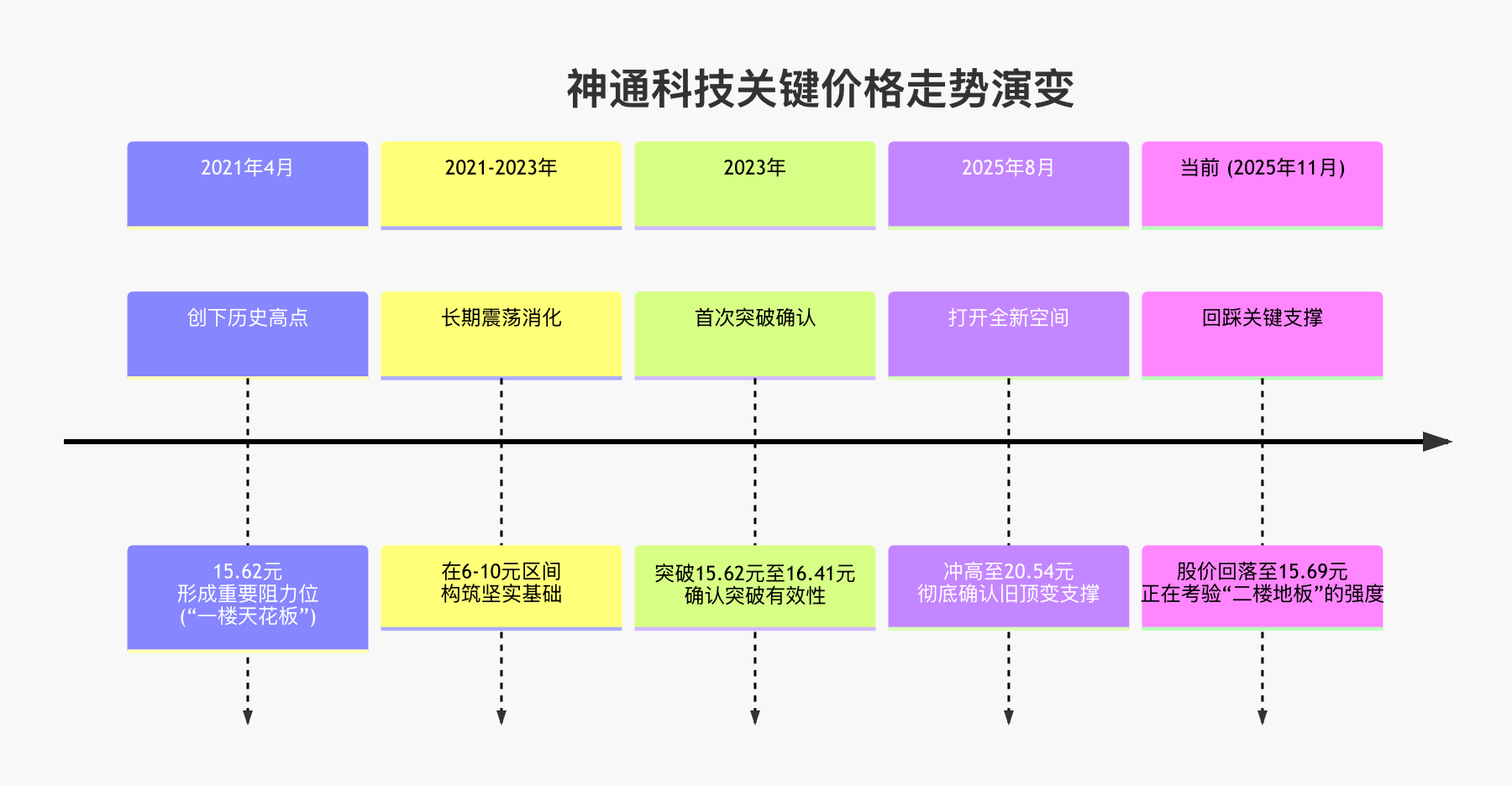 $神通科技(SH605228)$ 休息二天有空给你们做了几张文字版的图,读过书的都懂,这种情况就等放量的方向,看看2021年的2个历史头部横着画二条线就明白了
