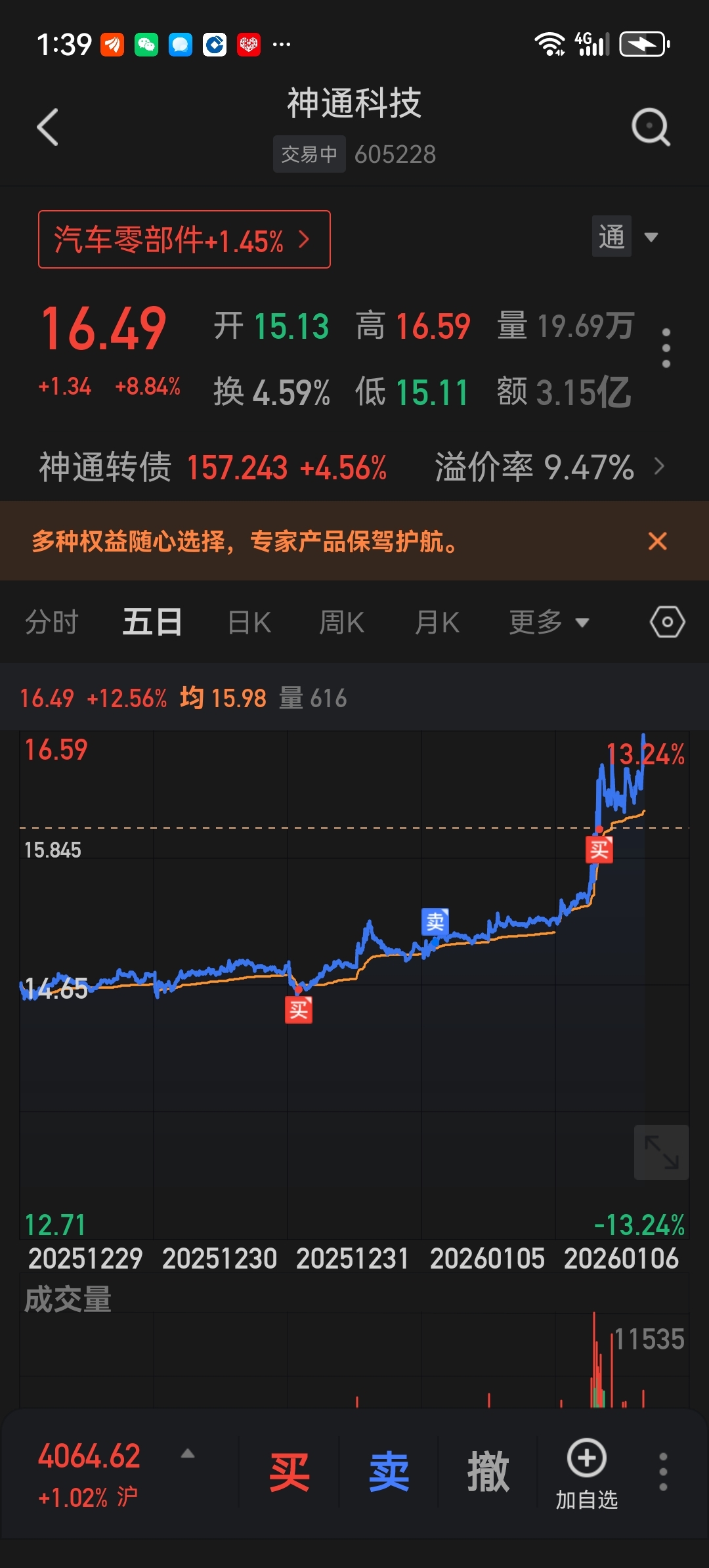 $神通科技(SH605228)$ 这该S的操作,为了补其他股票的仓,把它卖掉了,今天只有买回来