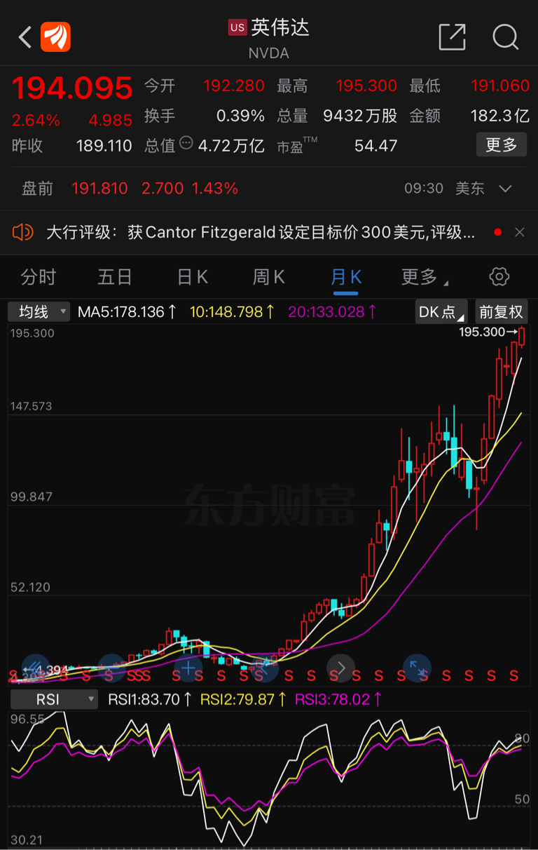 英伟达又创新高!市值冲破4.72万亿(33.6万亿人民币)一一中昊芯英的目标!