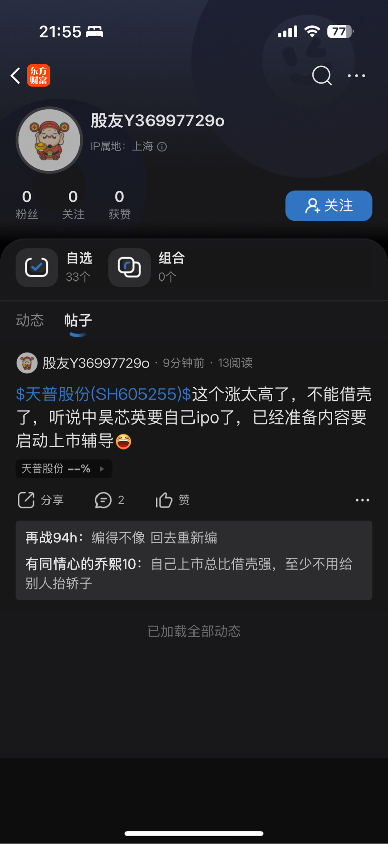 $天普股份(SH605255)$ 有水军啊,0帖子新号,效仿造谣智元香港上市。来,多来点水军,不是实名上网真给能耐的啊