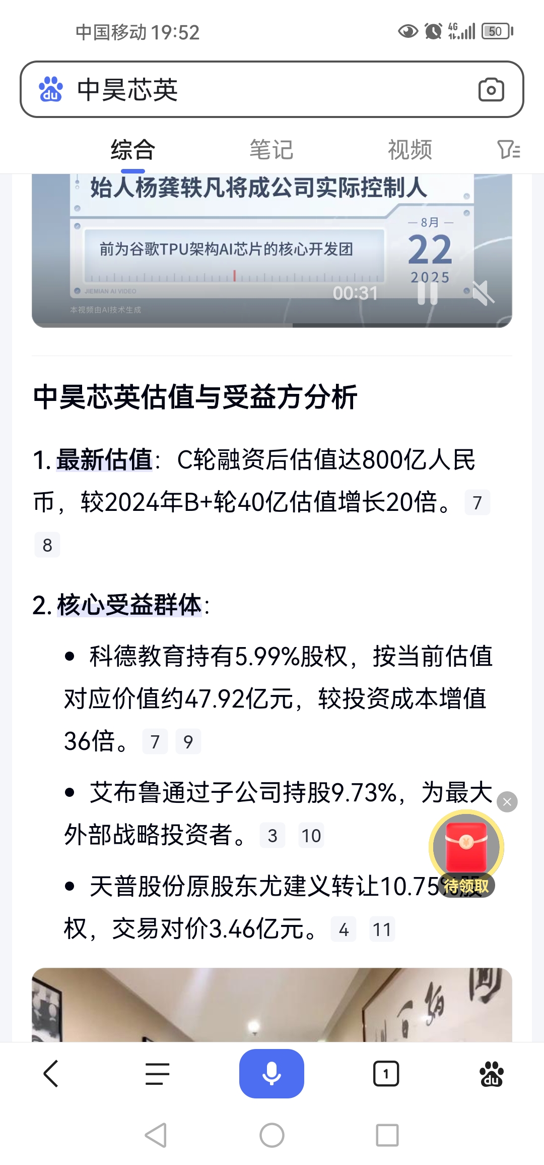 中昊最新估值:C轮融资后估值达800亿人民币,较2024年B+轮40亿估值增长2