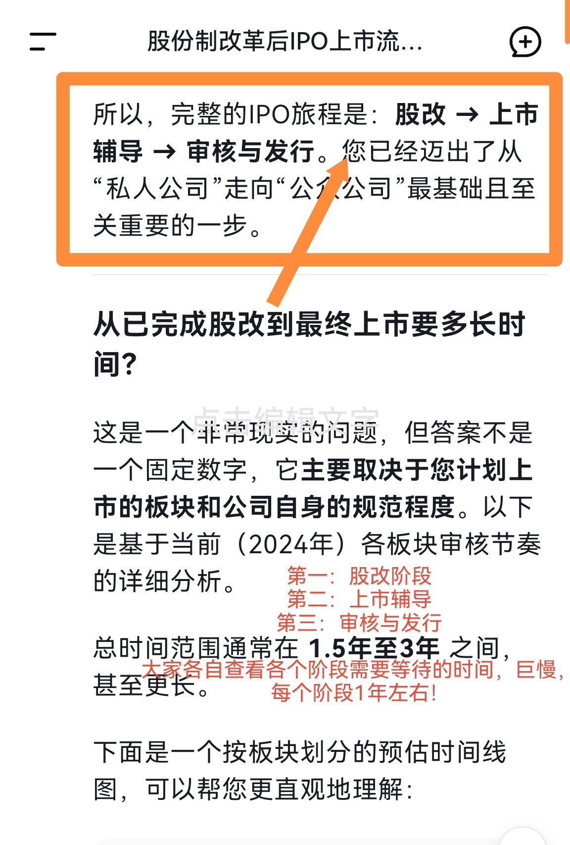 还在股改第一阶段,这也是被逼得没有办法的办法回复了!大家随便用豆包与Ds查下从股改开始到最后发行上市,要多长长时间一眼便知! 中昊芯英只有借壳这条路是最快的捷径,才能与其他企业一样做大做强!