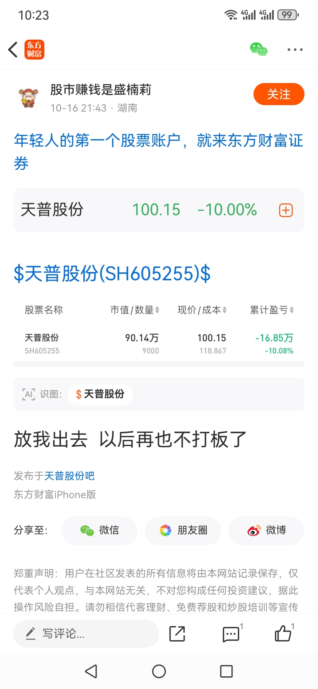 温馨提示: 1.根据《证券法》规定,禁止编造、传播虚假信息或者误导性信息,扰乱证券市场;2.用户在本社区发表的所有资料、言论等仅代表个人观点,与本网站立场无关,不对您构成任何投资建议。用户应基于自己的独立判断,自行决定证券投资并承担相应风险。《东方财富社区管理规定》