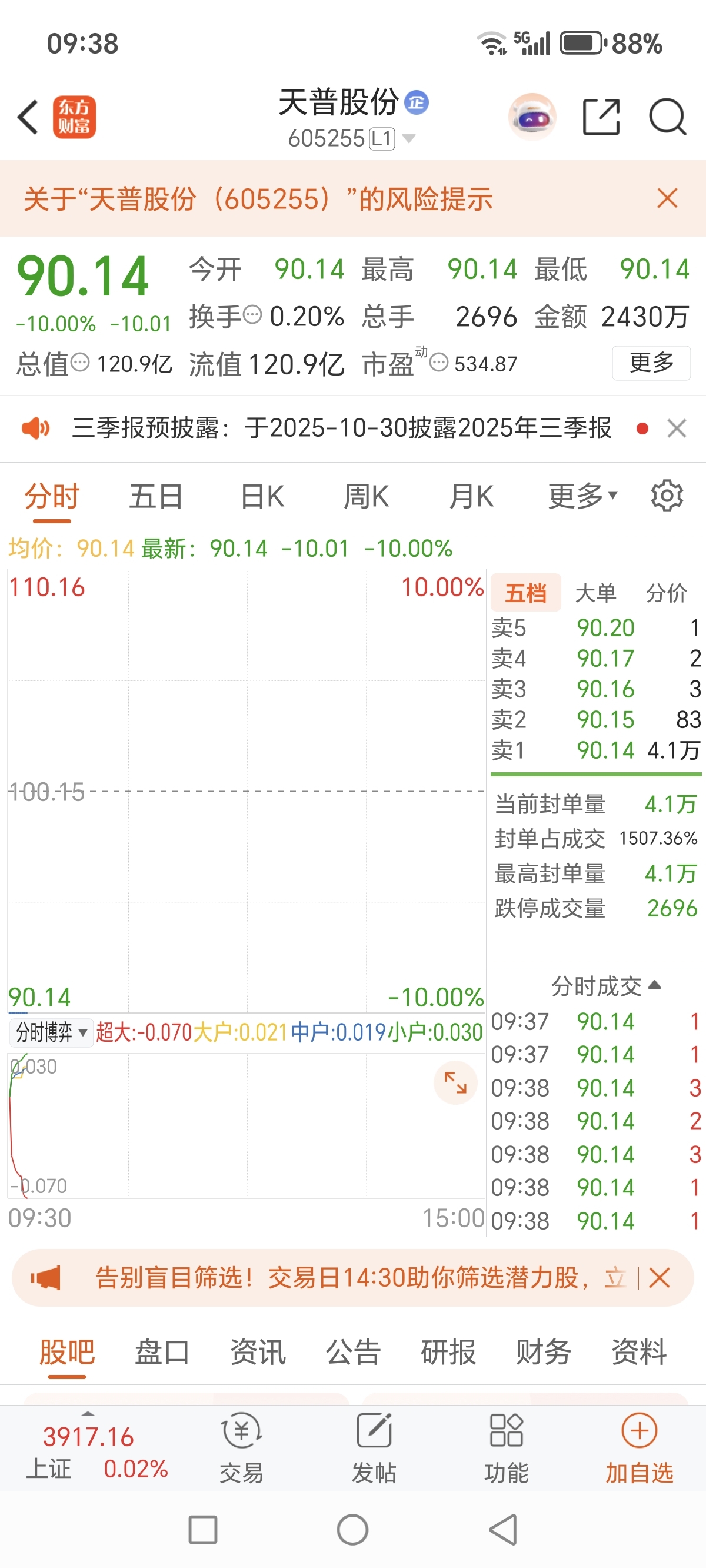 $天普股份(SH605255)$ $上证指数(SH000001)$ 我朋友想买入赌个地天板,他是不是做美梦呢?