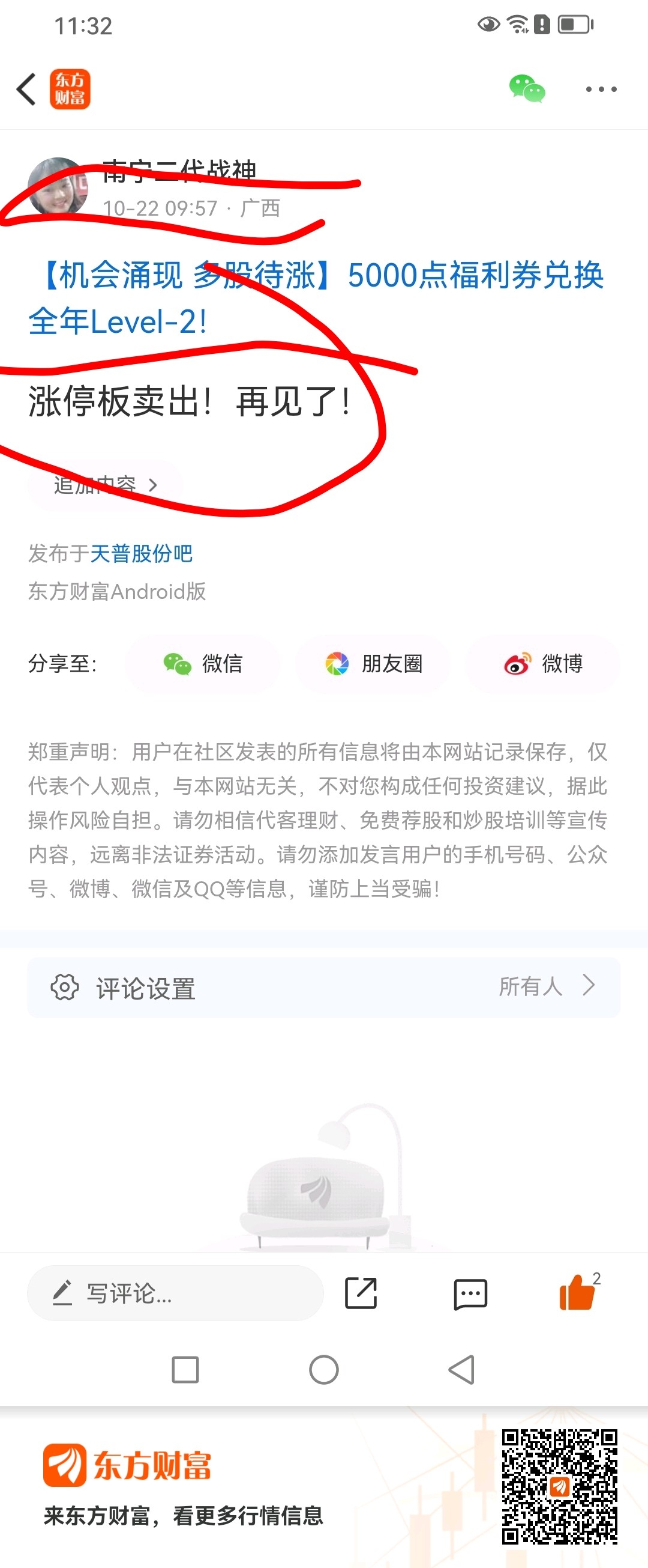 温馨提示: 1.根据《证券法》规定,禁止编造、传播虚假信息或者误导性信息,扰乱证券市场;2.用户在本社区发表的所有资料、言论等仅代表个人观点,与本网站立场无关,不对您构成任何投资建议。用户应基于自己的独立判断,自行决定证券投资并承担相应风险。《东方财富社区管理规定》