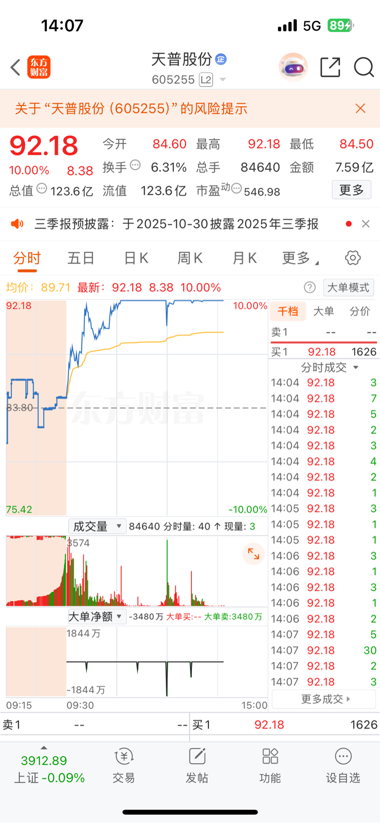 $天普股份(SH605255)$ 小心了,散户一定不要接盘了,看level2的大单净额,散户进够了,他们就几百万几千万的砸盘