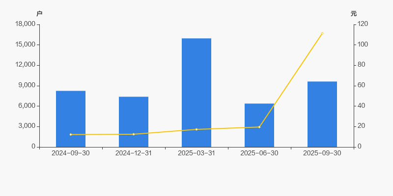 2024年9月30日至今,公司股东户数显著增长,区间涨幅为16.65%。2024年9月30日至2025年9月30日区间股价上涨810.96%。