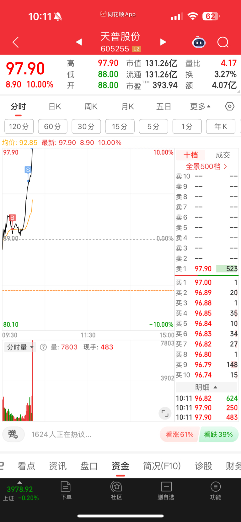 $天普股份(SH605255)$ T的就是你。昨天买,今天涨停T出去