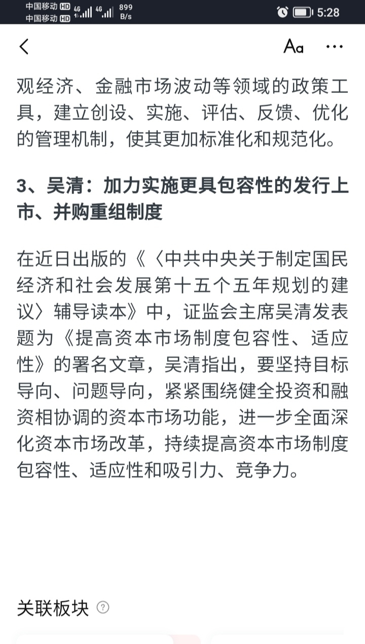 在近日出版的《〈中共中央关于制定国民经济和社会发展第十五个五年规划的建议〉辅导读本》中,证监会主席吴清发表题为《提高资本市场制度包容性、适应性》的署名文章,吴清指出,要坚持目标导向、问题导向,紧紧围绕健全投资和融资相协调的资本市场功能,进一步全面深化资本市场改革,持续提高资本市场制度包容性、适应性和吸引力、竞争力。