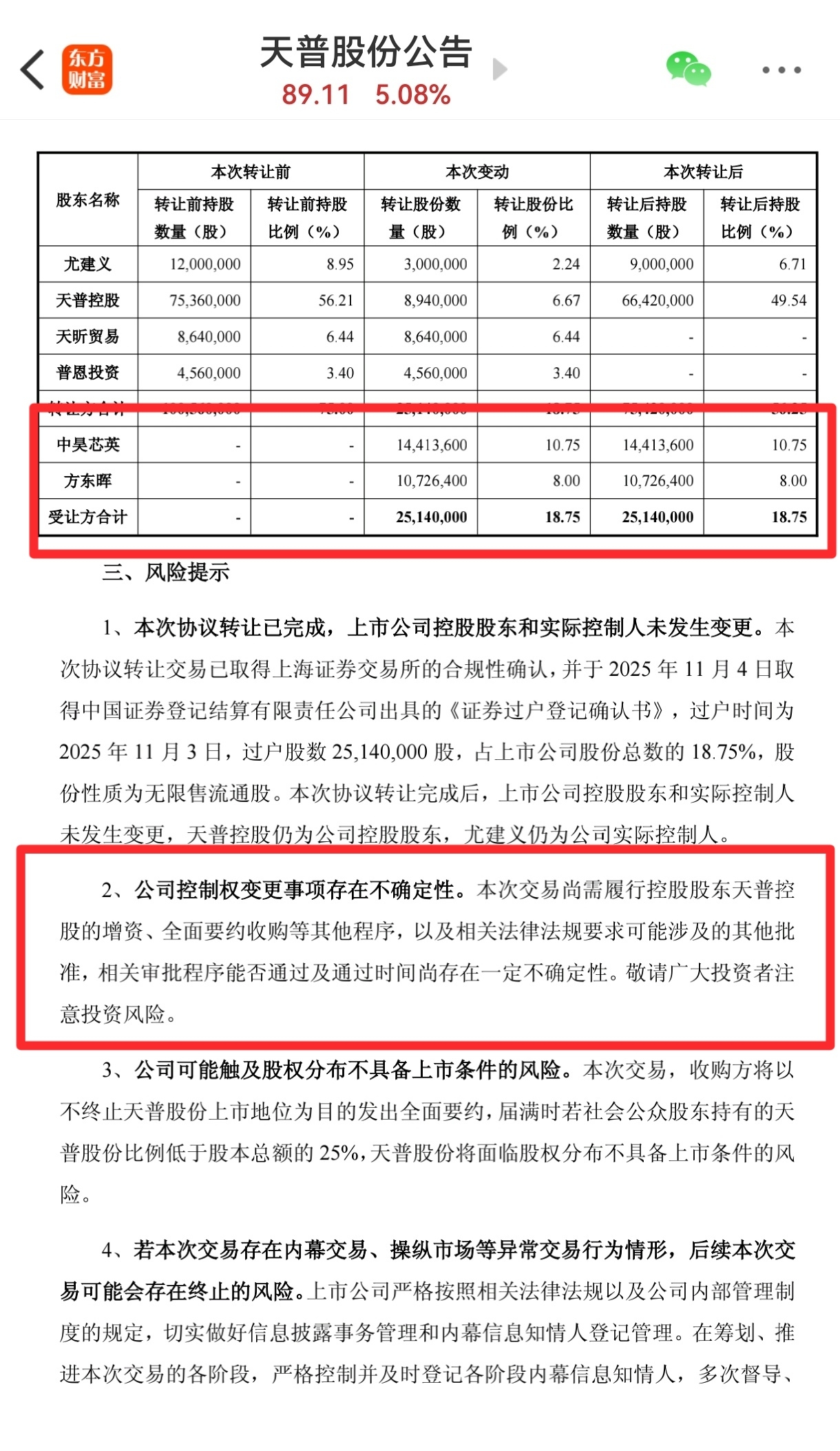 控股股东及一致行动人协议转让股份完成过户登记,明天涨停