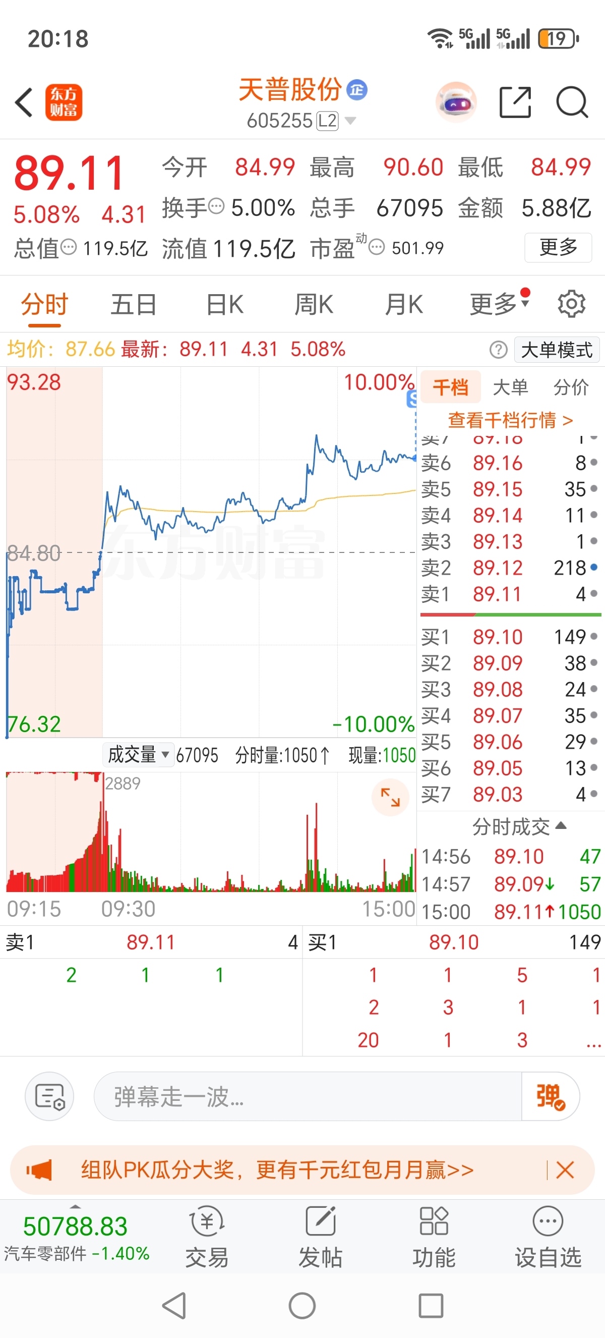 $天普股份(SH605255)$ 10月一之前就拿着,倒在黎明前,没拿住,大家都来笑话我吧