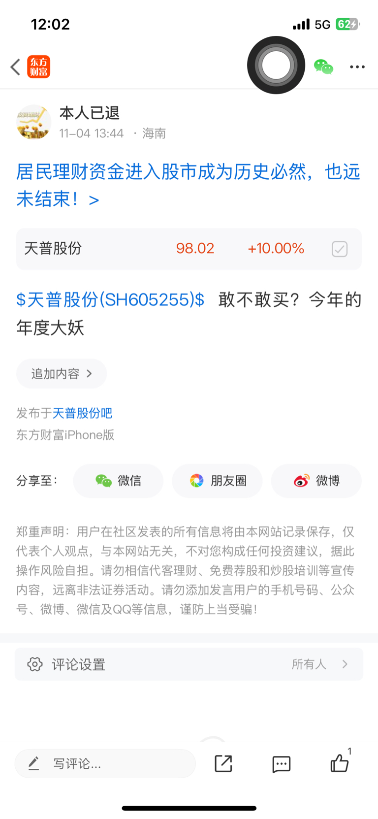 温馨提示: 1.根据《证券法》规定,禁止编造、传播虚假信息或者误导性信息,扰乱证券市场;2.用户在本社区发表的所有资料、言论等仅代表个人观点,与本网站立场无关,不对您构成任何投资建议。用户应基于自己的独立判断,自行决定证券投资并承担相应风险。《东方财富社区管理规定》