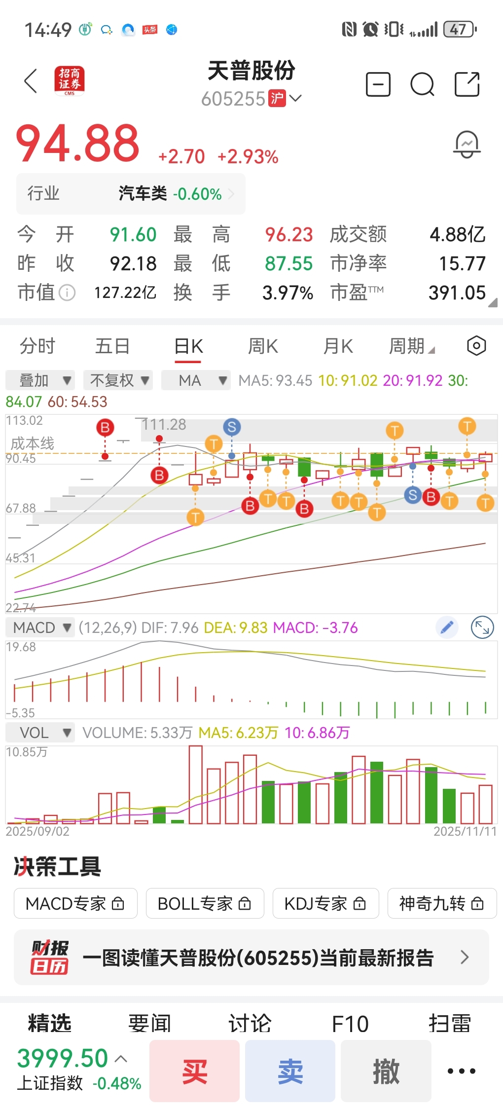 $天普股份(SH605255)$ 我在天普练做T功,怕卖飞只能先买后卖