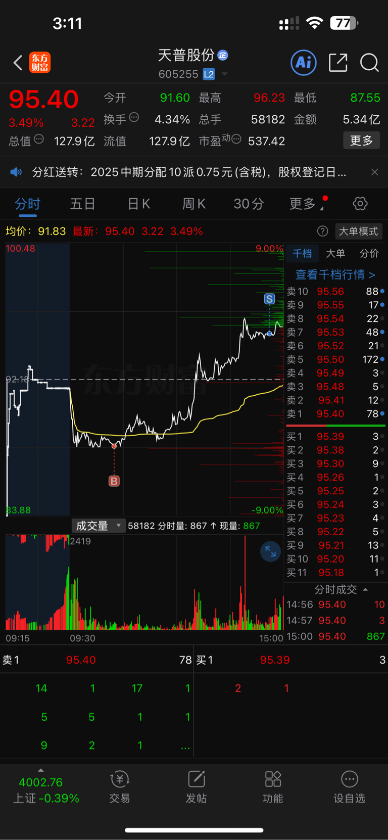 $天普股份(SH605255)$ 拿了2个月了都没做T,今天又莫名其妙下杀 这不送钱吗 多赚个万把块