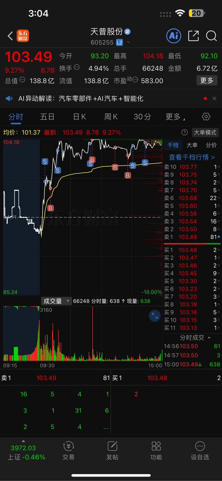 $天普股份(SH605255)$ 拿了几个月没T过,今天T了玩下 差点弄飞, 还是做不来T