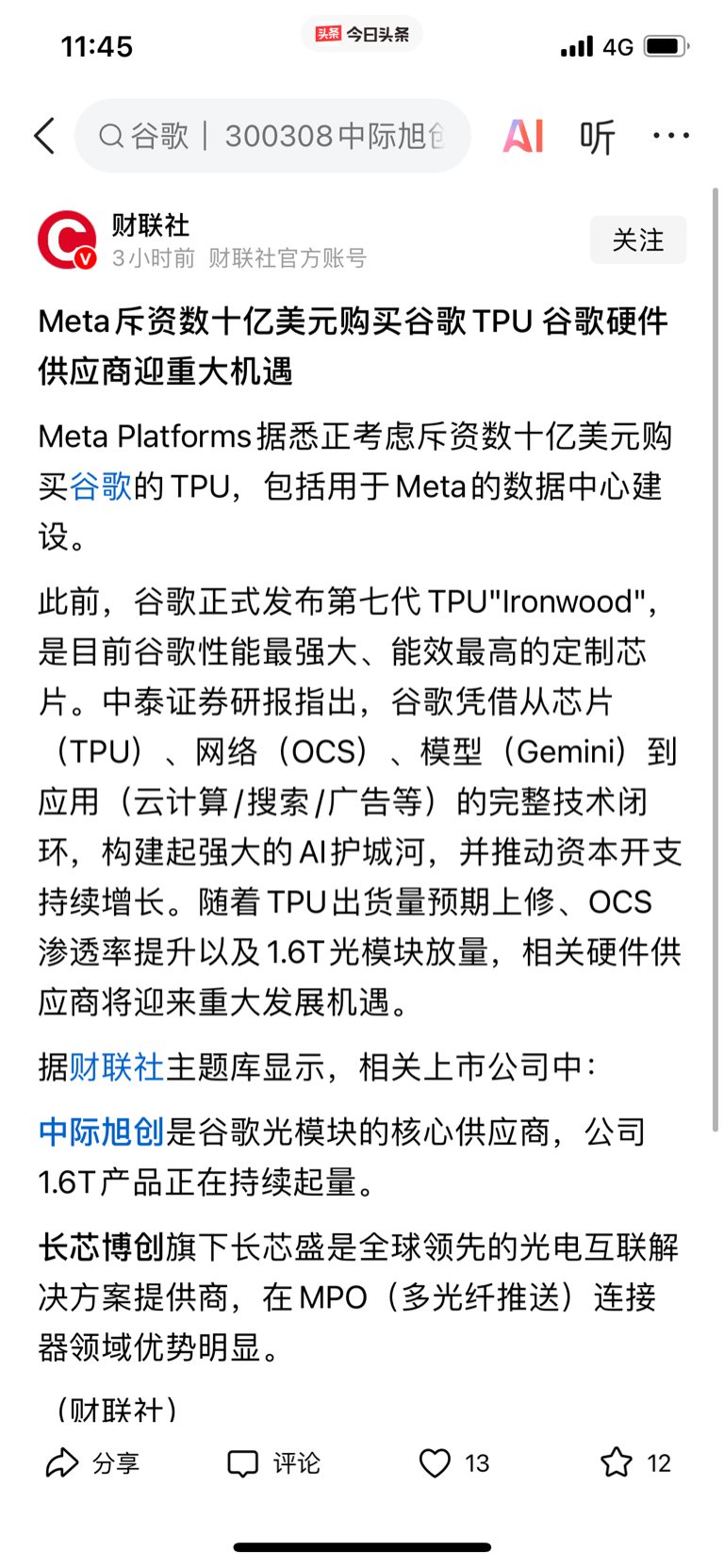 $天普股份(SH605255)$ meta要买几十亿美元谷歌tpu,等于字节,阿里,天翼云,移动云,华为云,腾讯云要买天普中昊TPU,这次JG打压不住了。赶紧批准中昊借壳天普,成就中国版谷歌TPU。