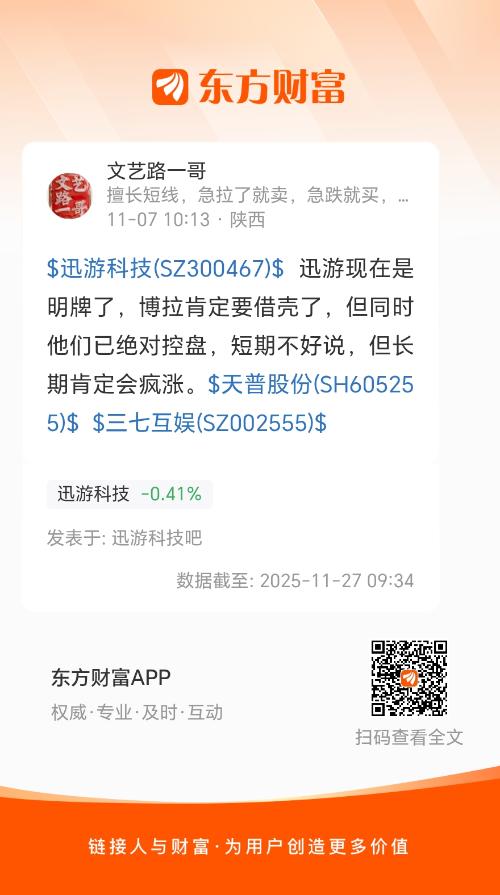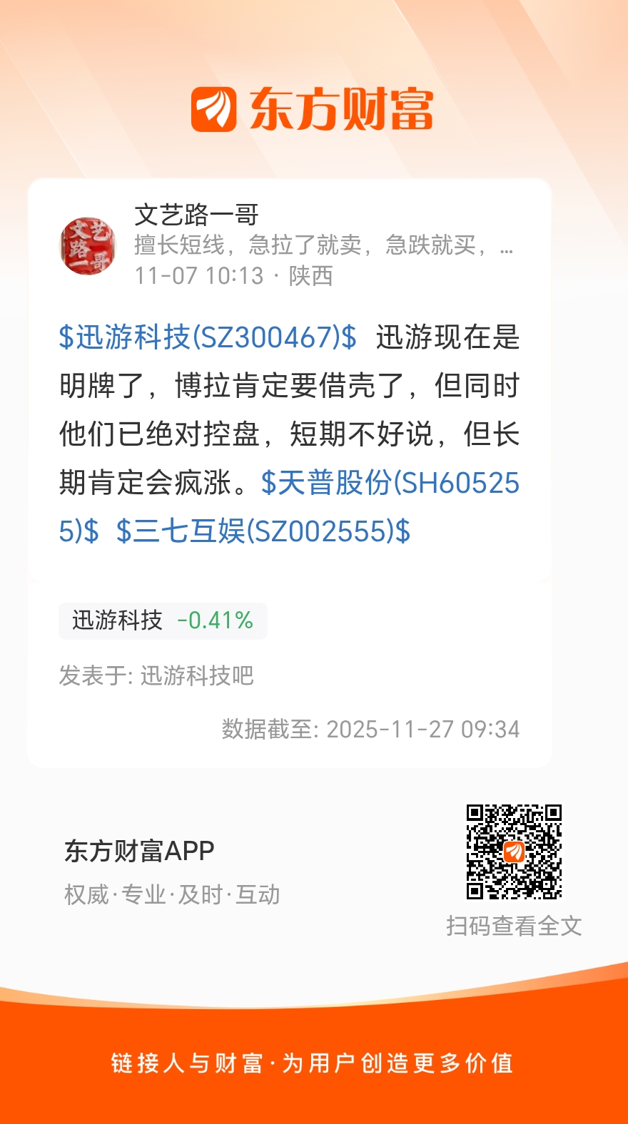 $迅游科技(SZ300467)$ 迅游现在是明牌了,博拉肯定要借壳了,但同时他们已绝对控盘,短期不好说,但长期肯定会疯涨。$天普股份(SH605255)$ $三七互娱(SZ002555)$