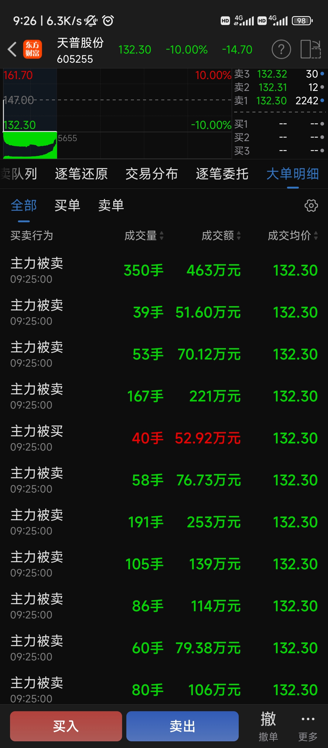 $天普股份(SH605255)$ 集合竞价,大单几乎都是在卖出