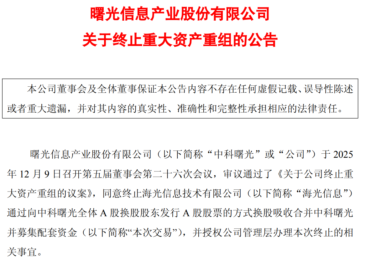 今天中科曙光直接跌停,主要是重组告吹了。昨天晚上海光信息跟中科曙光的重大资产重组宣布终止了,当时宣布重大资产重组的时候,海光信息和曙光信息都是因为这个消息暴涨了的,现在这个利好是子虚乌有的,所以股票要加速回落到起点,中科曙光还有海光信息都是大跌的。