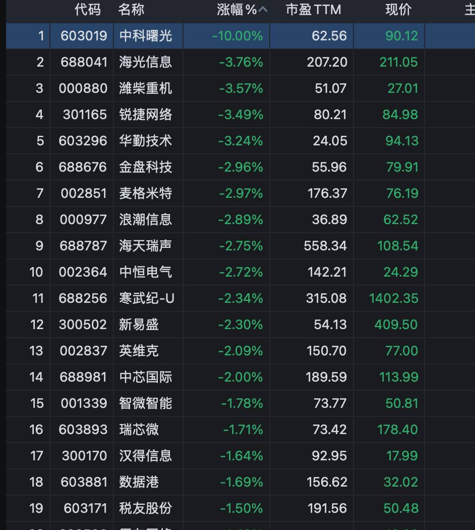 2. 海光信息,大跌4%,AI芯片供应$海光信息(SH688041)$