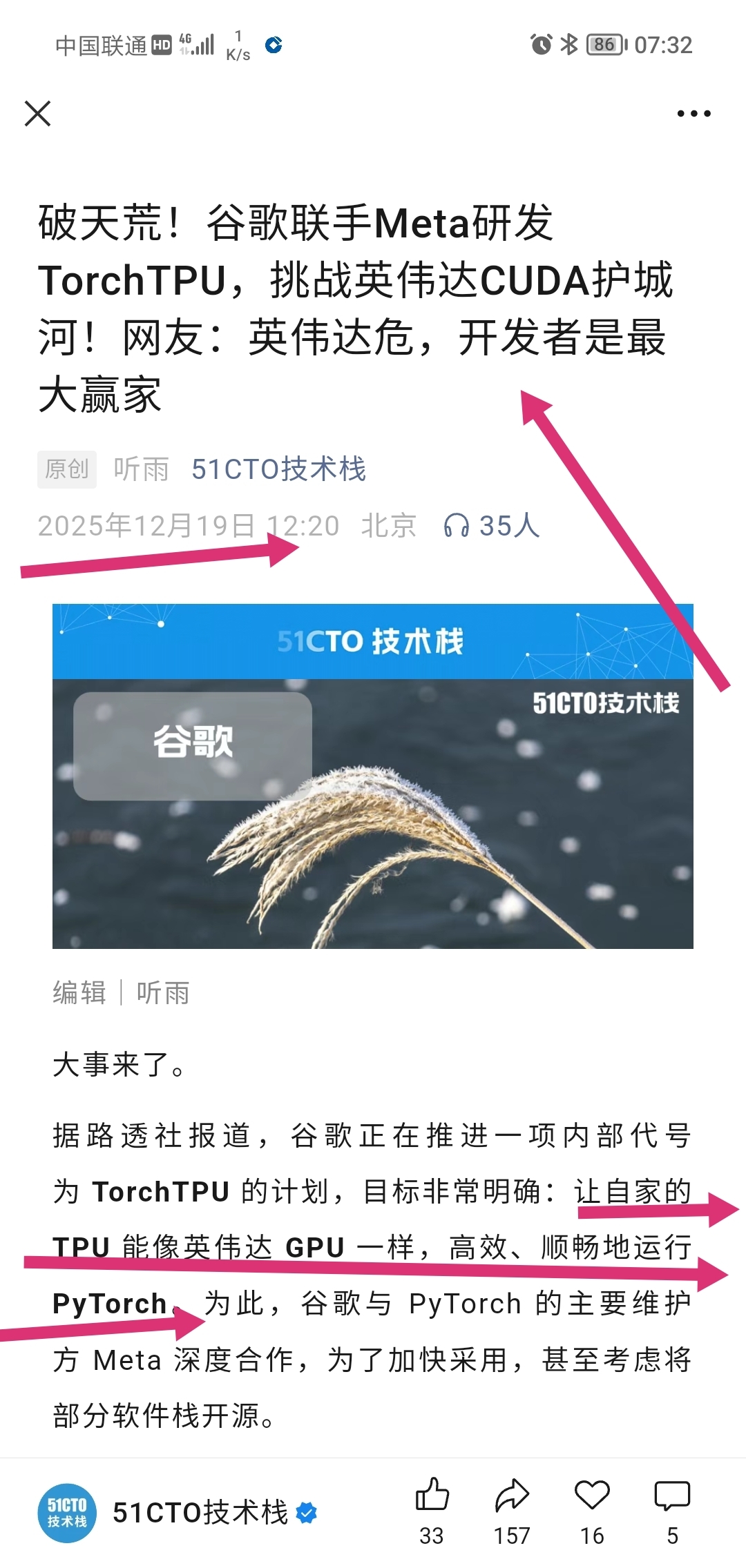 $天普股份(SH605255)$ $艾布鲁(SZ301259)$ $科德教育(SZ300192)$ 谷歌TPU重大举措,研发TorchTpu支持PyTorch来挑战英伟达Cuda。而中昊芯英官网已经公告支持PyTorch。谷歌至少要12-18月后才可。