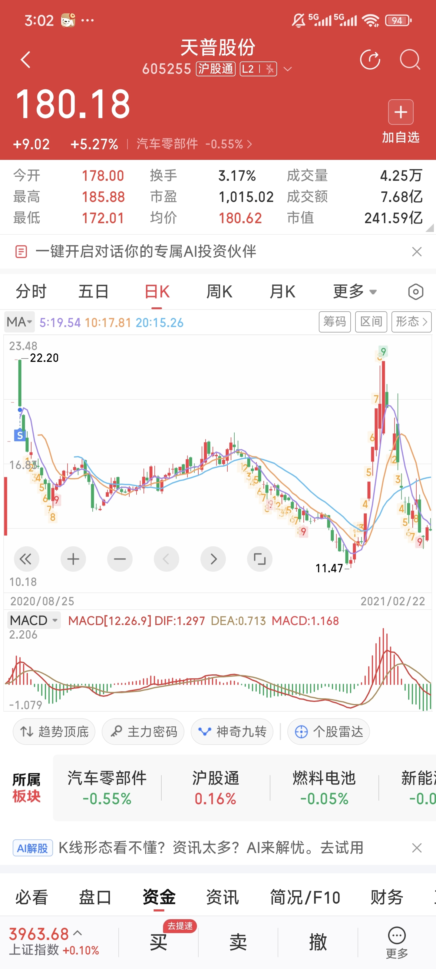 $天普股份(SH605255)$ 打新中的5000块500股,当时开板就卖了