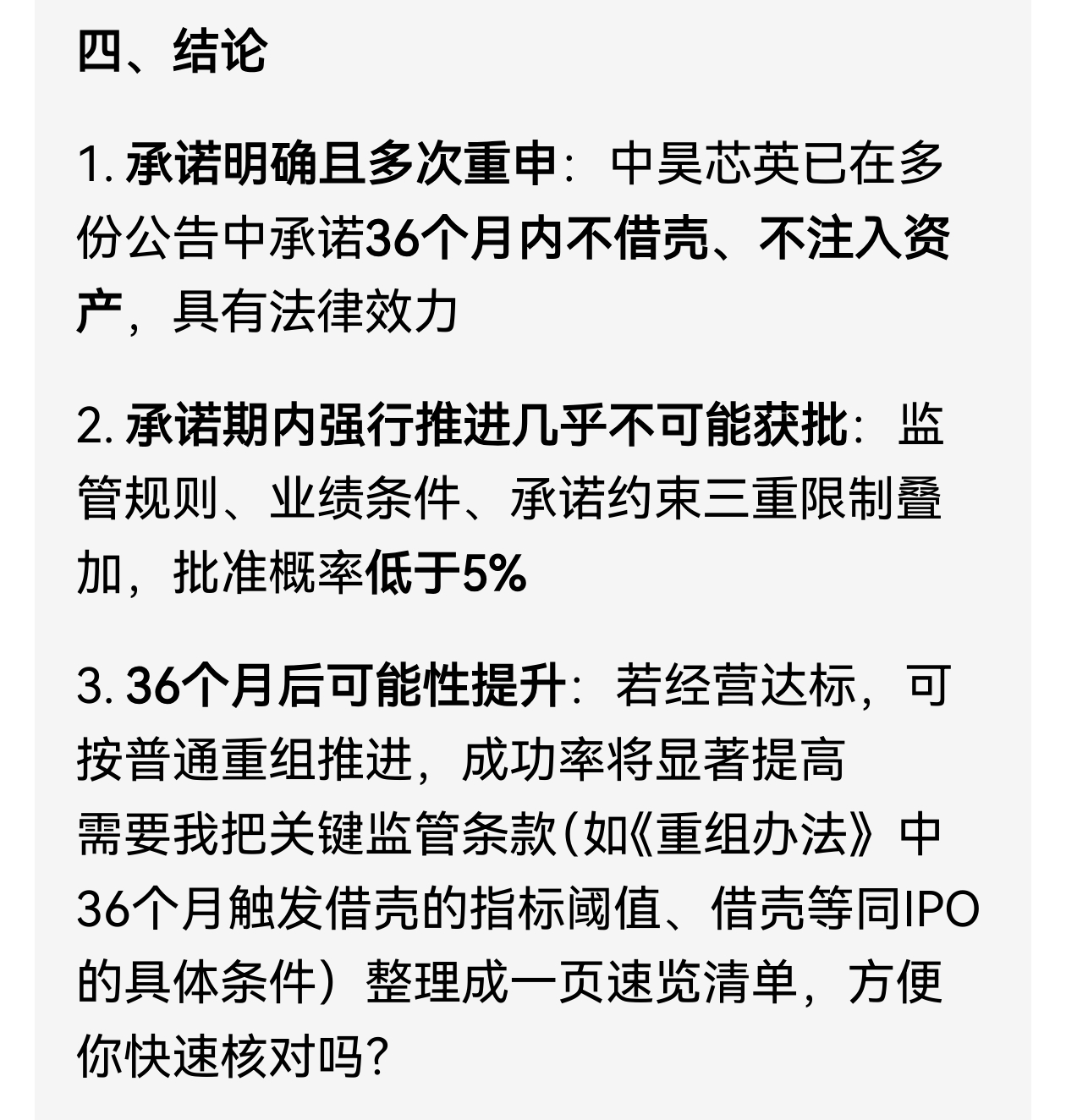 $天普股份(SH605255)$ 控股股东已经多次公告36个月内没有借壳重组资产注入计划,若控股股东要强行借壳重组和资产注入天普,监管机构有没有可能批准放行呢?这个可能性会有多大?
