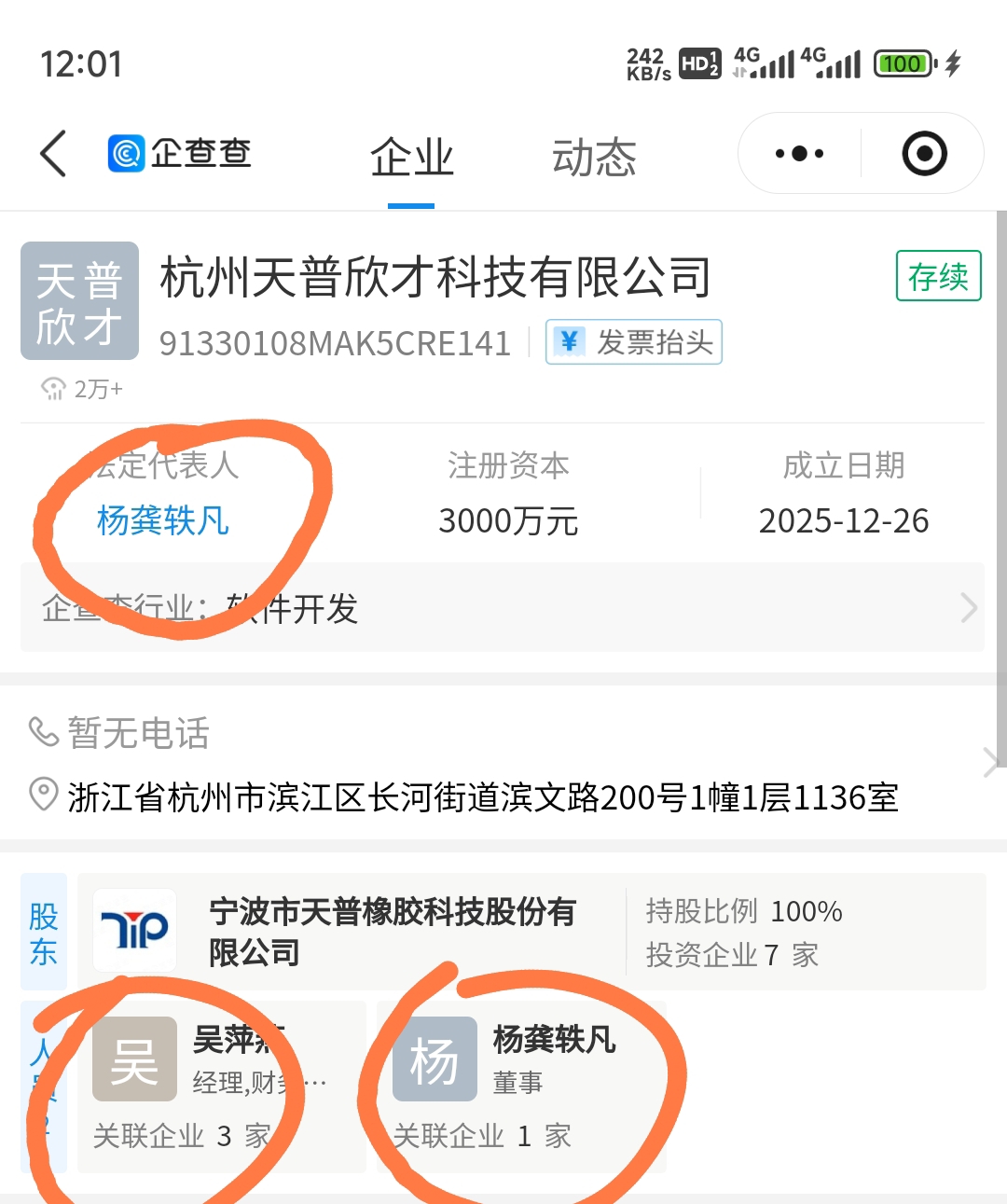 实控人杨龚轶凡应该也接受到处理,因为新成立的那个注册资金3,000万的天普欣才公司,他是这个新公司的实控人,法人。