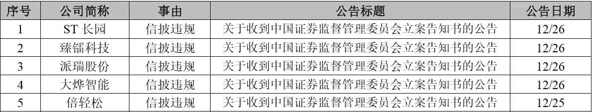 立案原因:实控人违规减持,会计差错,资金违规占用,利益输送等。